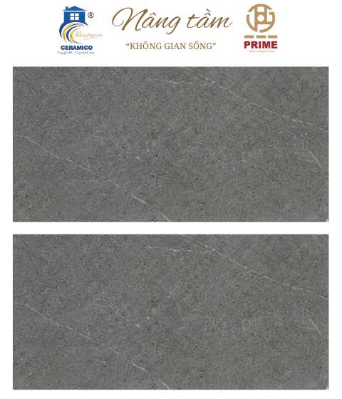 Họa tiết đá tự nhiên: Bề mặt gạch được điểm xuyết bởi các hạt li ti và đường vân trắng mảnh, mô phỏng vẻ đẹp mộc mạc của đá tự nhiên.