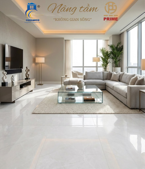 Thách thức thời gian: Cốt liệu đá rắn rỏi kết hợp công nghệ phủ men tân tiến giúp bề mặt luôn đanh chắc, chống mài mòn xuất sắc dù mật độ đi lại cao.