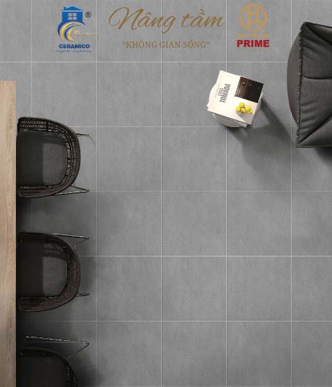Sản phẩm: Gạch Prime tông xám trung tính, vân đá mờ mang phong cách hiện đại và tối giản.