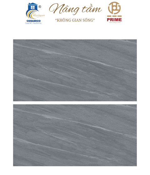 Mẫu gạch mang tông màu xám đậm chủ đạo, điểm xuyết bởi những đường vân đá chéo sắc nét, mang lại cảm giác vừa vững chãi vừa chuyển động cho không gian.