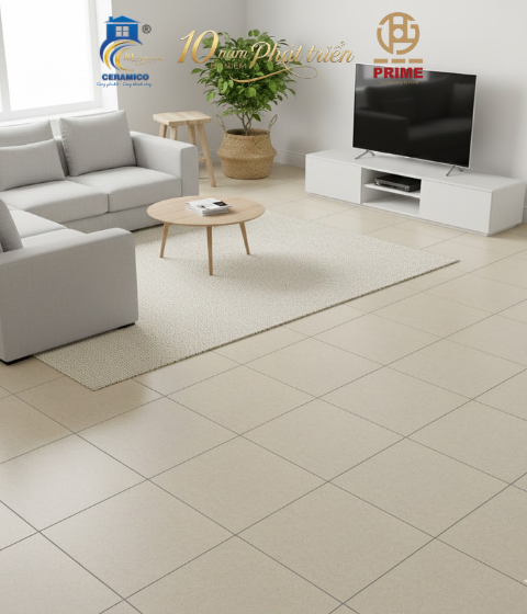 Tạo cảm giác ấm cúng và thư giãn: Khác với vẻ lạnh lùng của màu xám, tông màu vàng kem mang lại sự ấm áp tức thì cho không gian. Mẫu gạch này đặc biệt phù hợp cho phòng ngủ và phòng khách gia đình, nơi cần cảm giác thư thái, sum vầy và gần gũi.