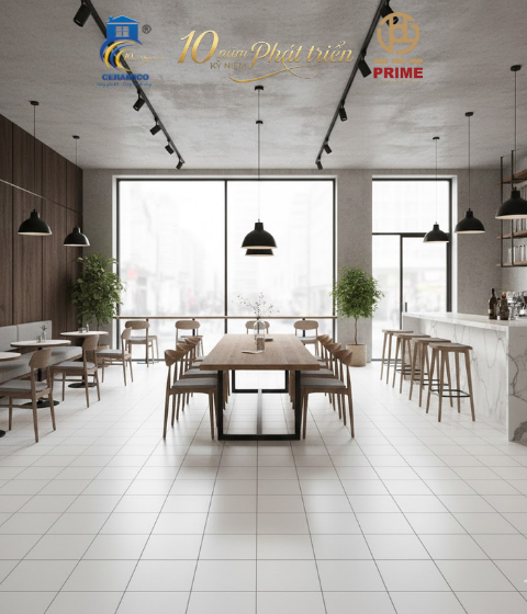 Dễ dàng vệ sinh và bảo trì: Bề mặt gạch thường được phủ men giúp chống bám bẩn, cho phép lau chùi các vết tràn như trà hay cà phê một cách nhanh chóng, giữ cho sàn nhà luôn sáng bóng và đảm bảo tiêu chuẩn vệ sinh.