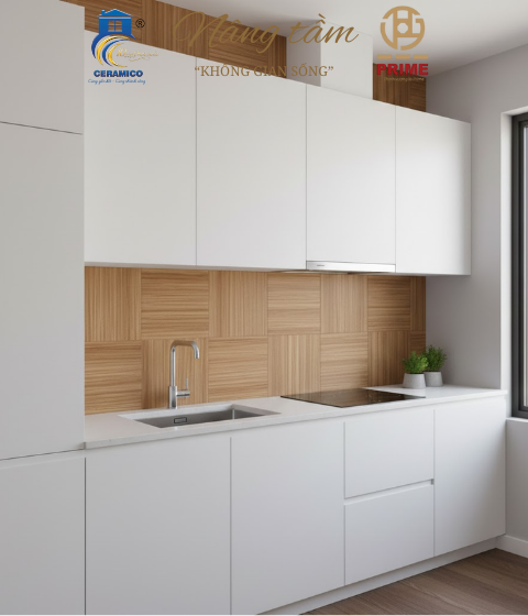 Điểm nhấn: Mang nét mộc mạc của gỗ vào không gian hiện đại, bền bỉ và dễ dàng vệ sinh