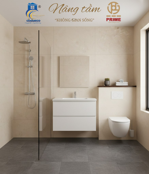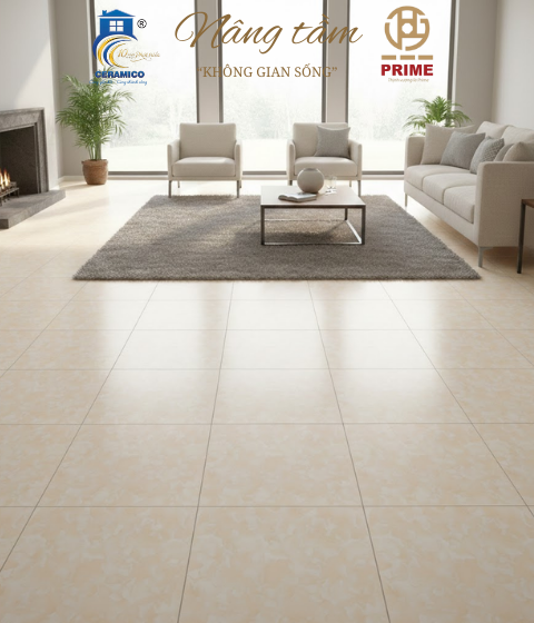 Sản phẩm: Gạch vân đá Marble tông kem sang trọng, bề mặt bóng kiệt.