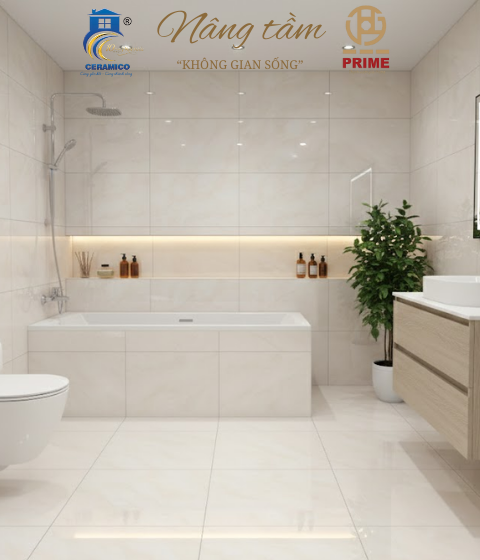 Vẻ đẹp: Sắc kem vân đá cẩm thạch tinh tế, tạo không gian sang trọng và thoáng đãng.