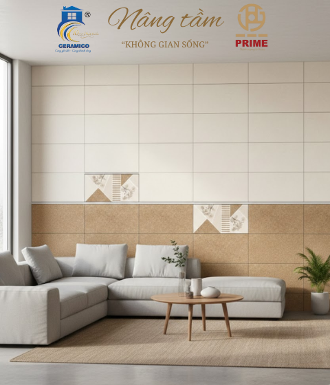 Sự kết hợp màu sắc ấm áp: Bộ gạch sử dụng các tông màu từ kem nhạt đến nâu đất, tạo cảm giác gần gũi, ấm cúng và sạch sẽ cho không gian.