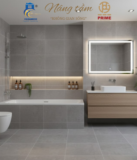 Đặc điểm: Tông màu xám trung tính, họa tiết giả bê tông hiện đại mang lại vẻ đẹp tối giản, mạnh mẽ.