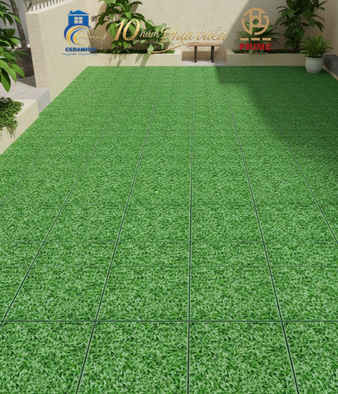 Thẩm mỹ đa dạng và dễ dàng vệ sinh: Với các thiết kế từ giả cỏ tự nhiên đến hạt đá hiện đại, gạch vừa tạo điểm nhấn sang trọng cho cảnh quan, vừa có khả năng chống bám rêu mốc, giúp việc lau dọn trở nên nhanh chóng và thuận tiện.