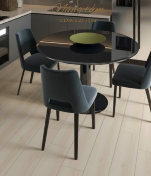 Vân gỗ tinh tế: Các đường vân gỗ được thể hiện nhẹ nhàng, mờ ảo, giúp bề mặt trông tự nhiên và mềm mại hơn so với các loại vân đậm.